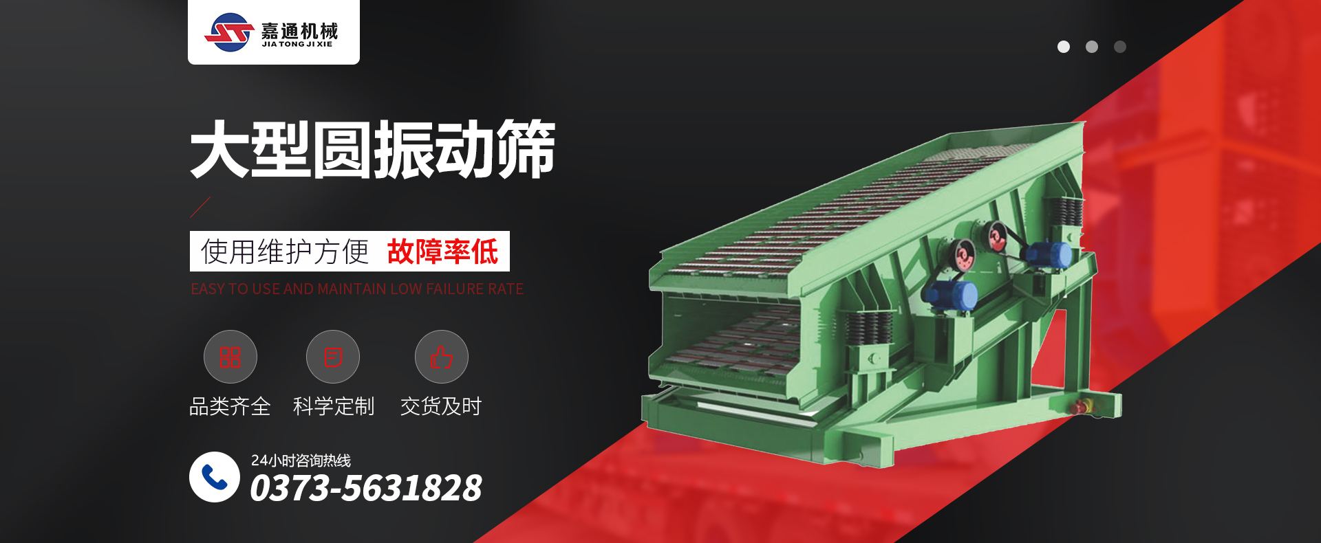 河南嘉通機械設備有限公司,地處中原寶地,北依太行,南臨黃河,東有京廣鐵路,西靠二廣高速,座落于交通便利的新鄉市南郊。  河南嘉通機械設備有限公司是生產環保設備、輸送設備、礦山設備、振動機械的廠家,具有多年的生產經驗,生產設備先進、技術力量雄厚,檢測手段齊全?! 」旧a各種用于冶金、焦化、煤炭、電力、鋼鐵、水泥等行業的環保設備、振動設備、選粉設備、輸送設備、風機等產品,設計合理,性能優異,價格合理,深受用戶信賴和好評,產品覆蓋國內30個省、市、自治區?! 」静粫M足于現狀,將繼續本著“誠信為本”的企業理念,“創新發展,與時俱進”的企業精神,以良好的信譽和高質量的產品,服務于用戶和社會,在競爭激烈的市場經濟大潮中創造更大的輝煌業...